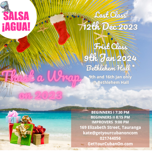 Wednesday Salsa practica – Final calss will be 13th December and our social dance class will return on 10th January at the Legion of Frontiersmen Hall, 165 Elizabeth Street at 7:30 – 9 pm.